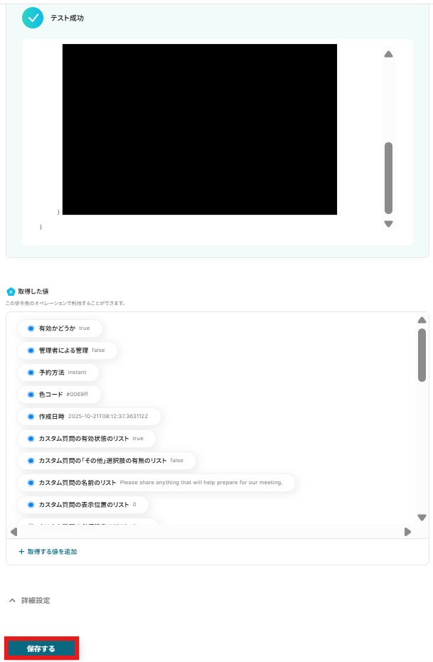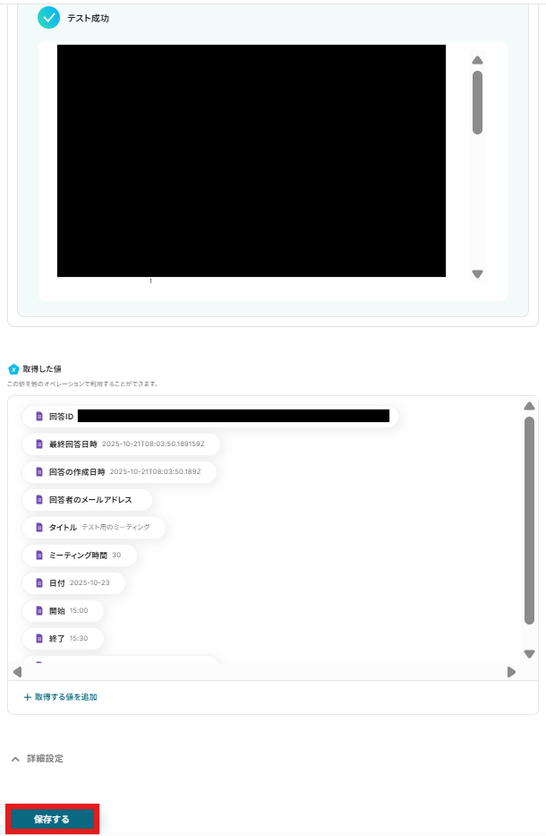 確認できたら、Yoomの画面に戻り「保存する」をクリックして次に進みます。