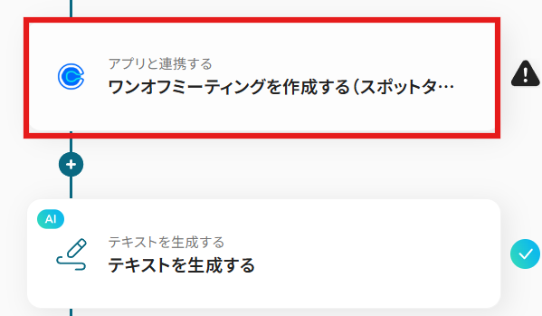 次に、Googleフォームの回答をもとに、Calendlyでワンオフミーティングを作成するアクションの設定を進めていきましょう。