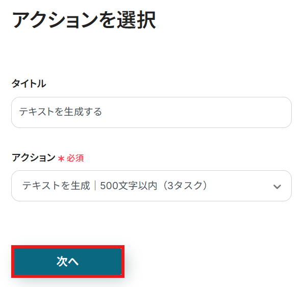 次に、送信するメールのテキストを生成するアクションの設定を進めていきましょう。