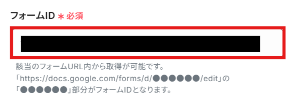 画面の案内を参考に、使用するGoogleフォームのフォームIDを入力します。