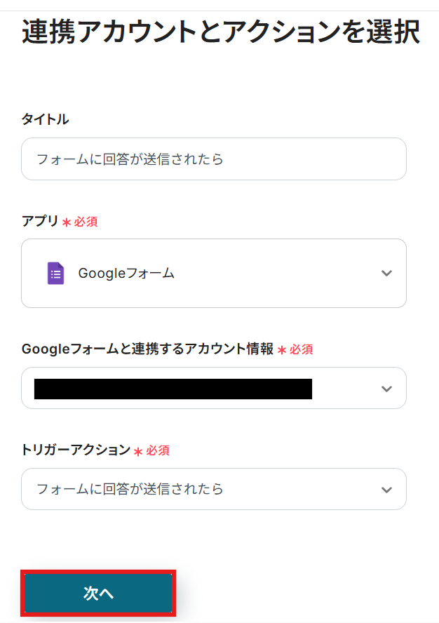 連携アカウントとアクションは、先ほどと同様に確認して次へ進んでください。