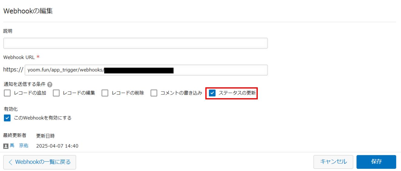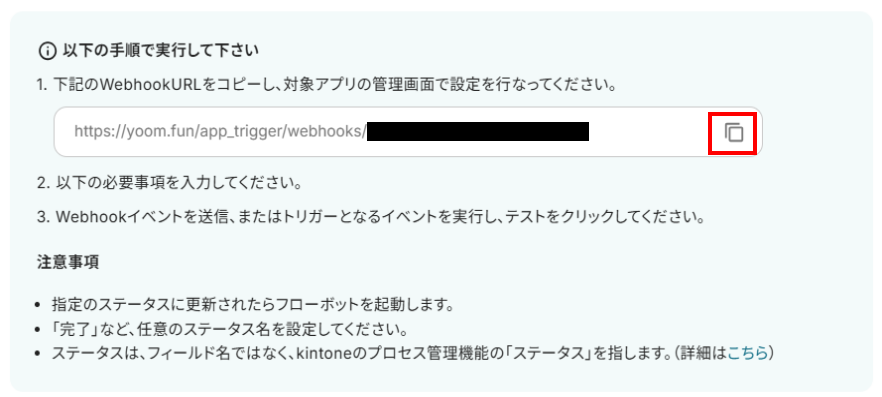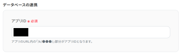ここには、ステップ3でWebhookのイベント受信設定をしたkintoneアプリの「アプリID」を入力してください。