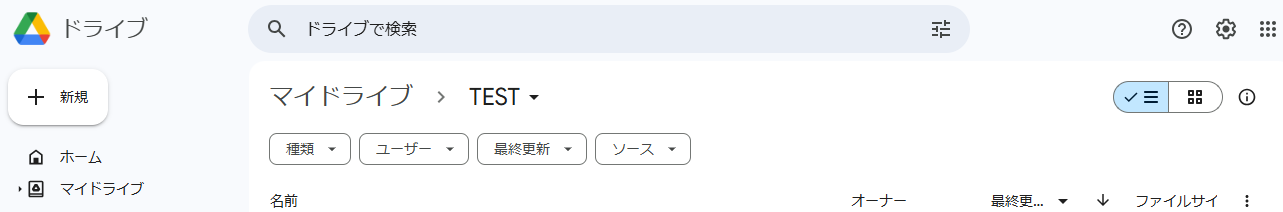 今回はマイドライブに「TEST」というフォルダを作成してみました!