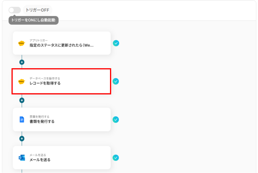 続いて、kintoneアプリからレコードの情報を取得する設定を行います。