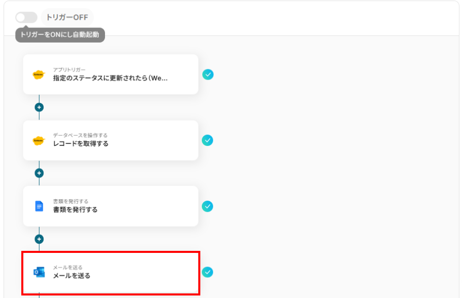 このワークフローを活用すれば、kintoneのステータス更新に連動して自動でPDFが作成され、メール送信まで一括で行うことが可能です。