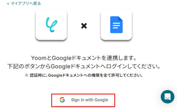 以下の画面が表示されるので、「Sign in with Google」をクリックしてください。