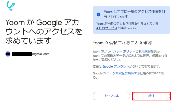Yoomと連携したいアカウントを選択します。