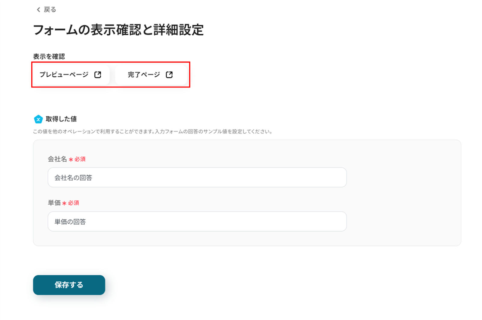 (3)「フォームの表示確認と詳細設定」画面から、フォームの表示を確認します。