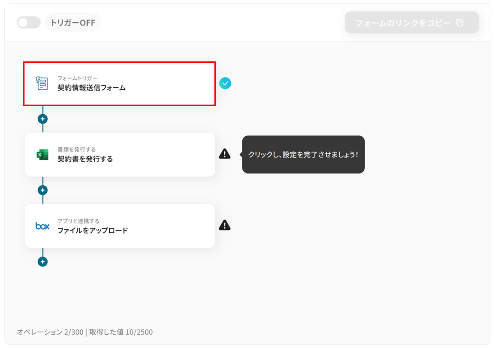 今回は入力フォームの情報をMicrosoft Excelの雛形で契約書を発行し、Boxに保存するフローを作成していきます!