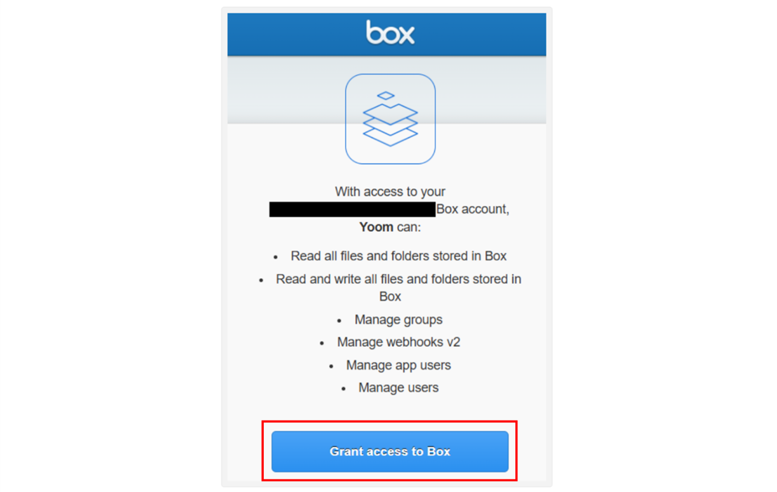 (4)ログインすると下の画像が出てくるので、「Grant access to Box」をクリックします。