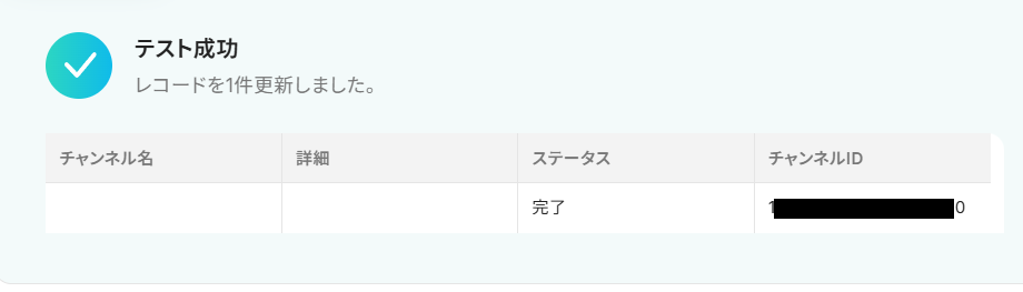 「テスト成功」の文字と共に、実際に更新されたレコードの情報が表示されていれば成功です!