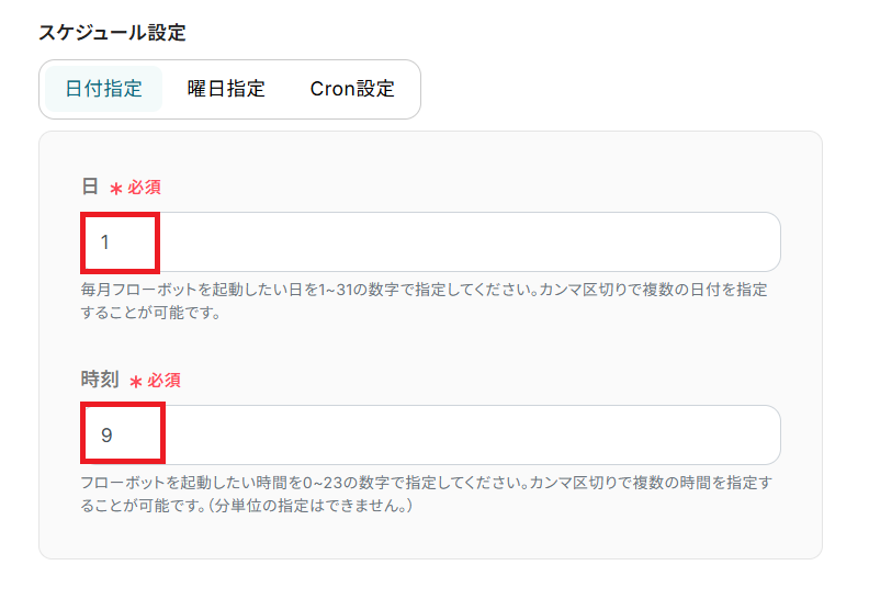 タイトルを任意で設定したら、フローボットを起動するスケジュールについて設定しましょう。