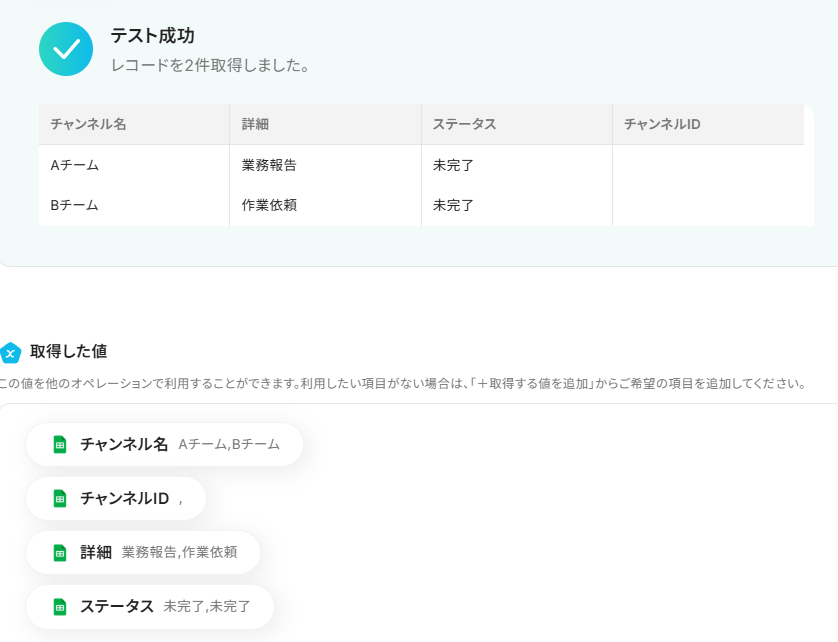 これにより、対象となる複数のチャンネル名を、1件ずつ順番に処理していくことが可能です。