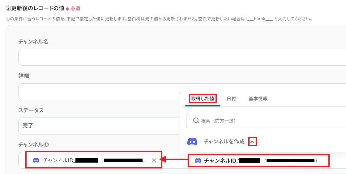 更新後の値は、手入力による固定値や、取得した値を用いて設定してみてください。特に更新の必要がない項目は空欄のままでOKです。