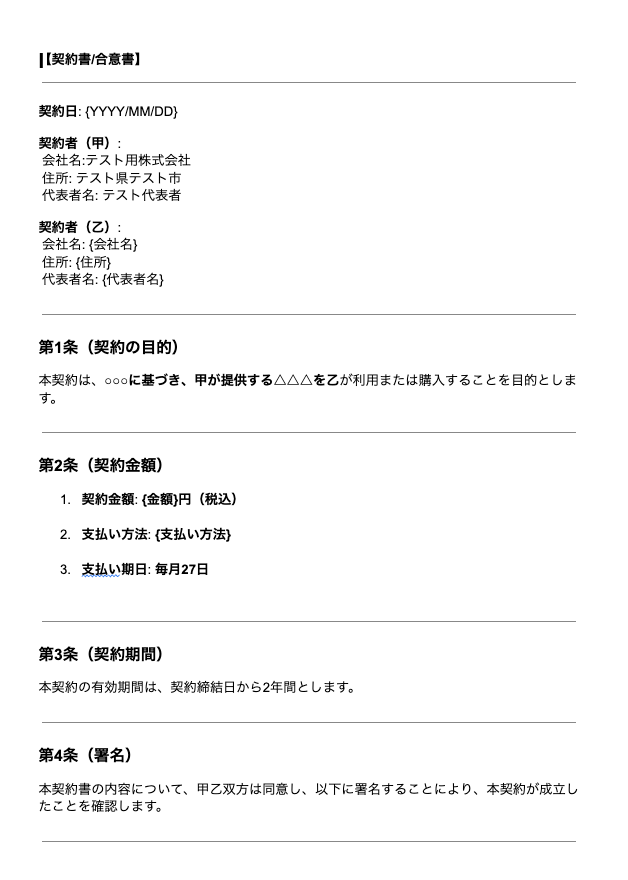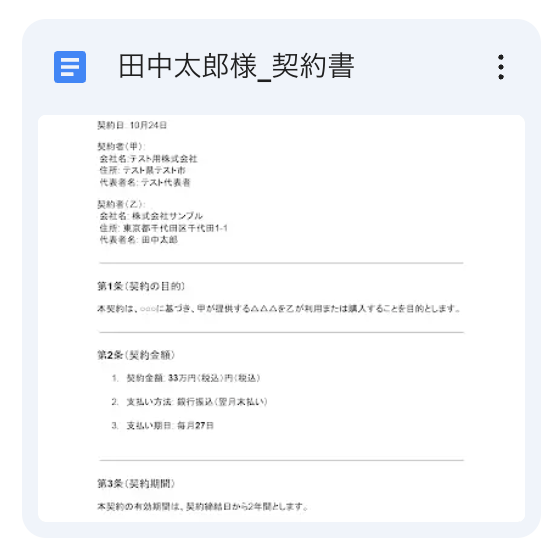 抽出された内容をもとに、Googleドキュメントで契約書(または関連書類)が自動作成されるようになります。