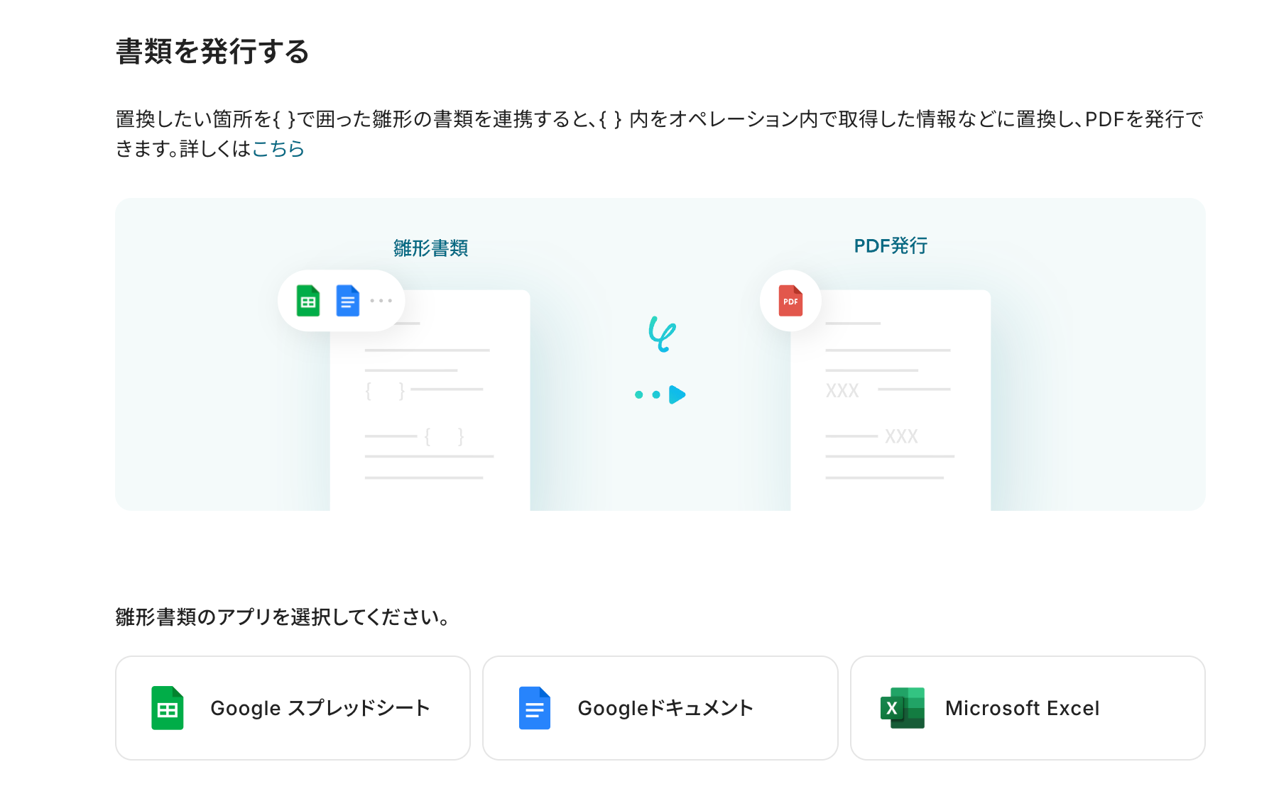 その後、各アプリに応じた項目設定を行うことで、任意の形式で書類を自動作成できます。