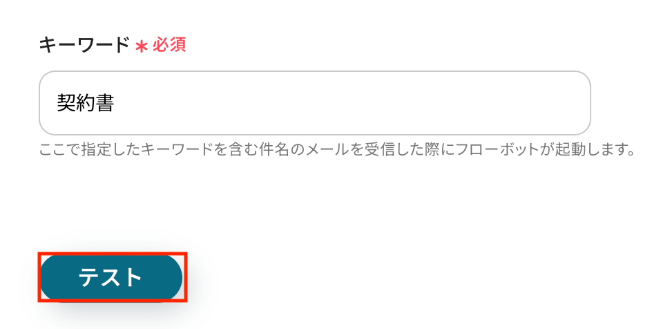 テスト用に受信したメールの件名に含まれるキーワードを入力しましょう。