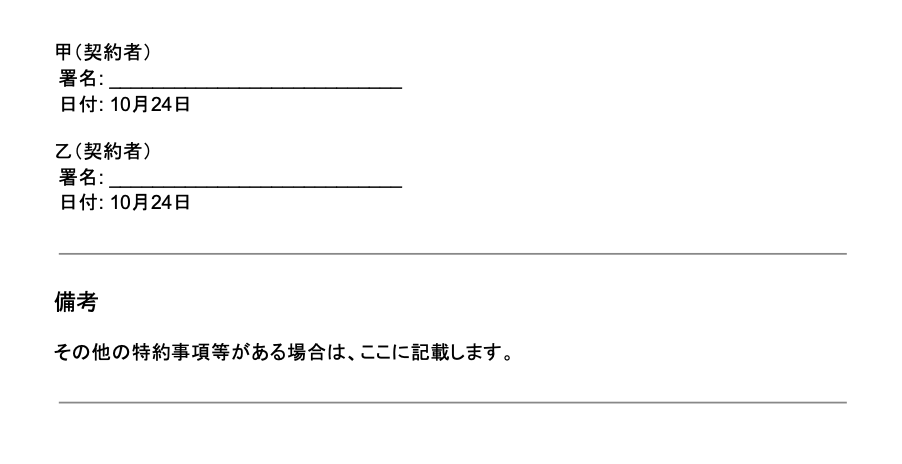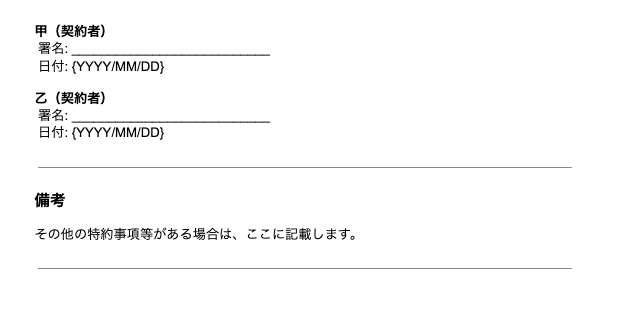 Googleドキュメントの雛形をもとに契約書を作成し、クラウドサインで契約書を送付します。