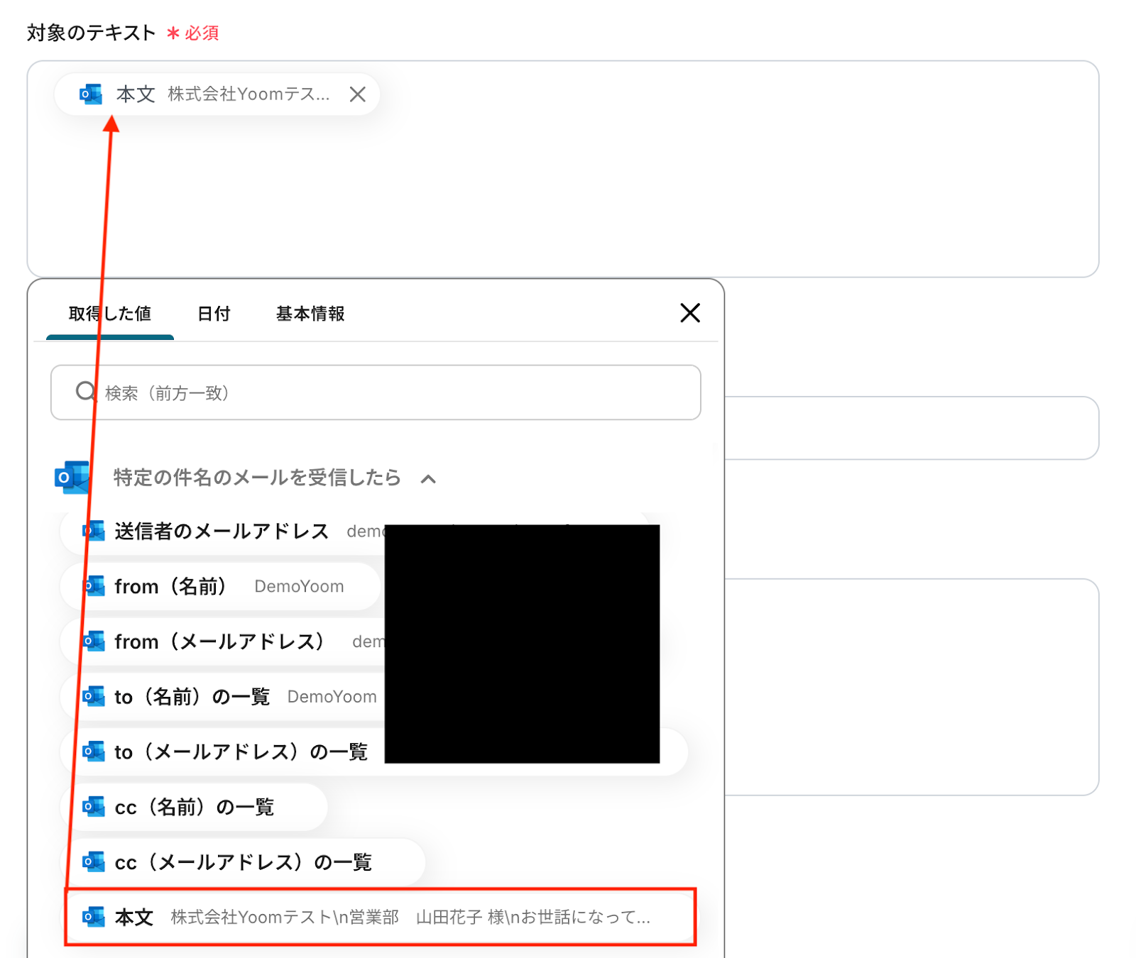 - Outlookのトリガー設定とAI機能でテキスト抽出およびGoogleドキュメントのアクション設定