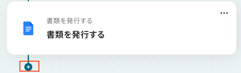 フローボットで、Googleドキュメントの「書類を発行する」アクション直下の+ボタンをクリックします。