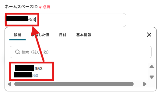 「ネームスペースID」も候補から選択しましょう。