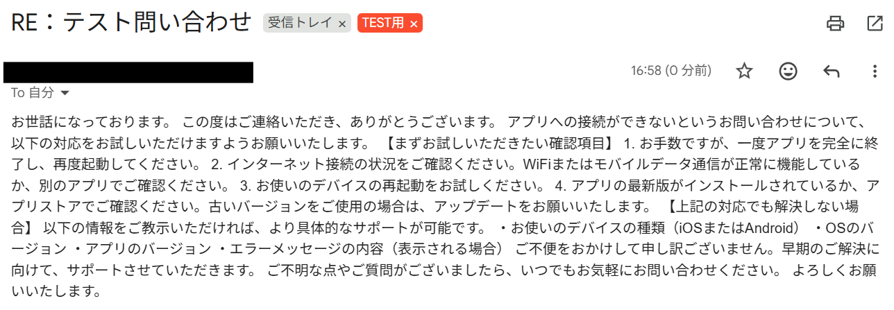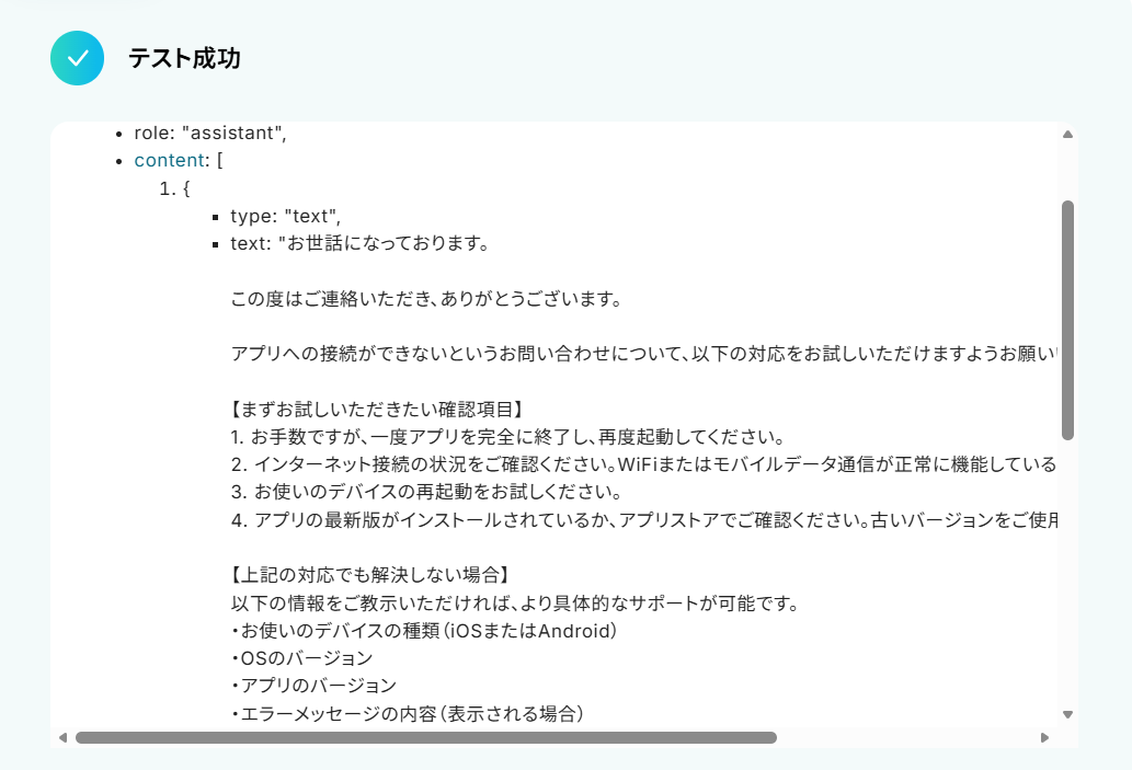 こちらもテストし、無事に返信文が生成されたら保存します。