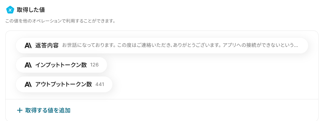 ここで取得した値を次以降のステップで活用します。