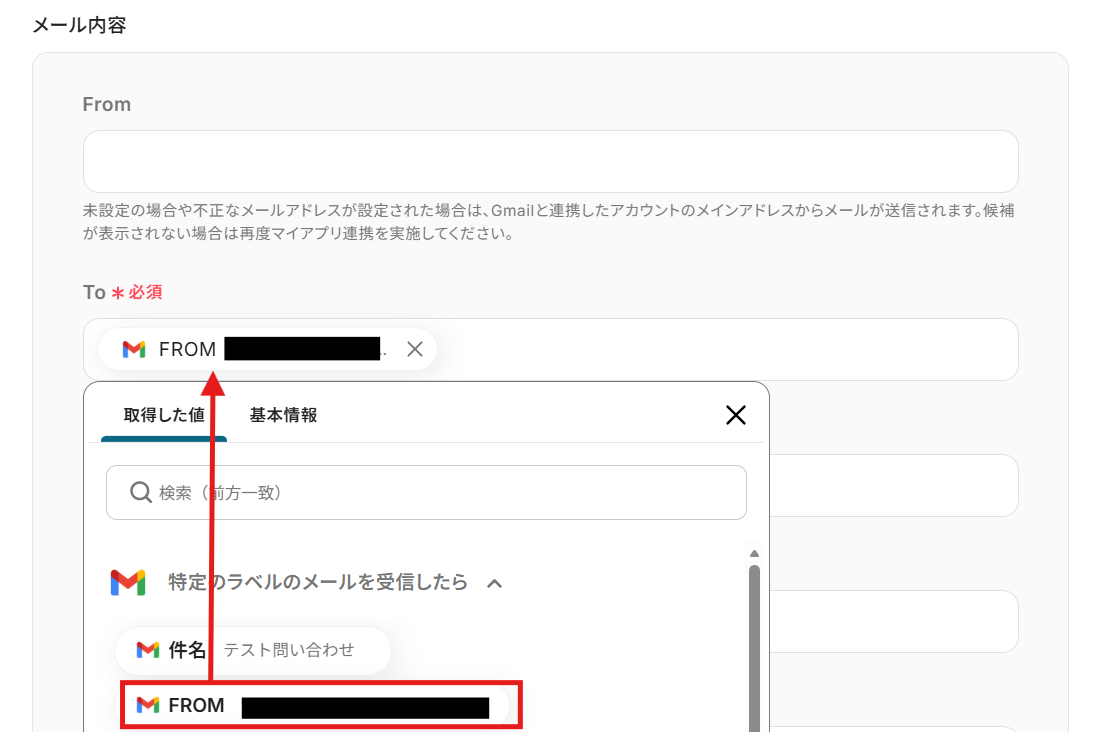 To: 通知先となるメールアドレスを入力。