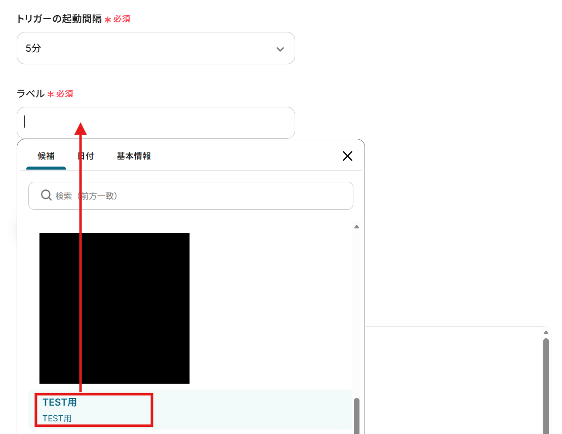 ラベル :先ほど設定したラベルを、候補から選択します。