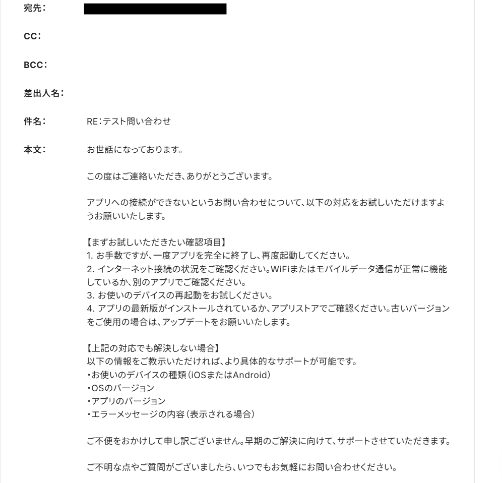 もし、受信したメールの内容に応じて、AIが文脈を理解し、適切な返信メールの下書きを自動で作成してくれる仕組み があれば、メール作成にかかる時間を削減し、より重要なコミュニケーションや戦略的な業務に集中できる貴重な時間を生み出せるでしょう!
