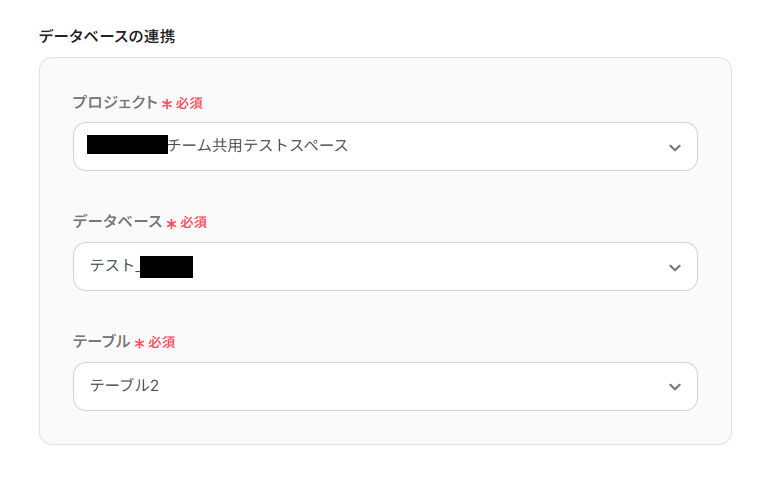 各項目は、プルダウンから、事前に用意したYoomのデータベースの各項目ついて選択してください。