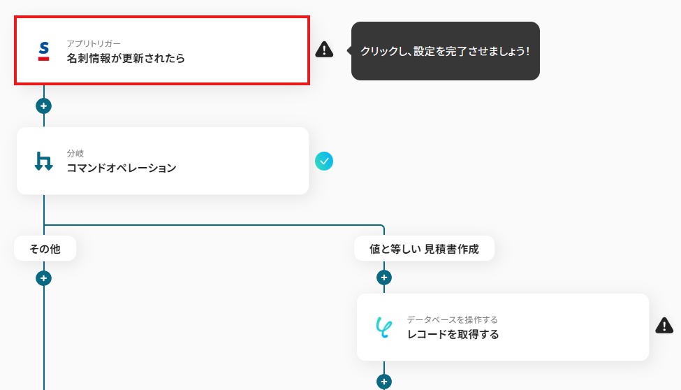 先ほどの画面で「OK」をクリックして、表示された画面のアプリトリガー「名刺情報が更新されたら」をクリックしましょう。