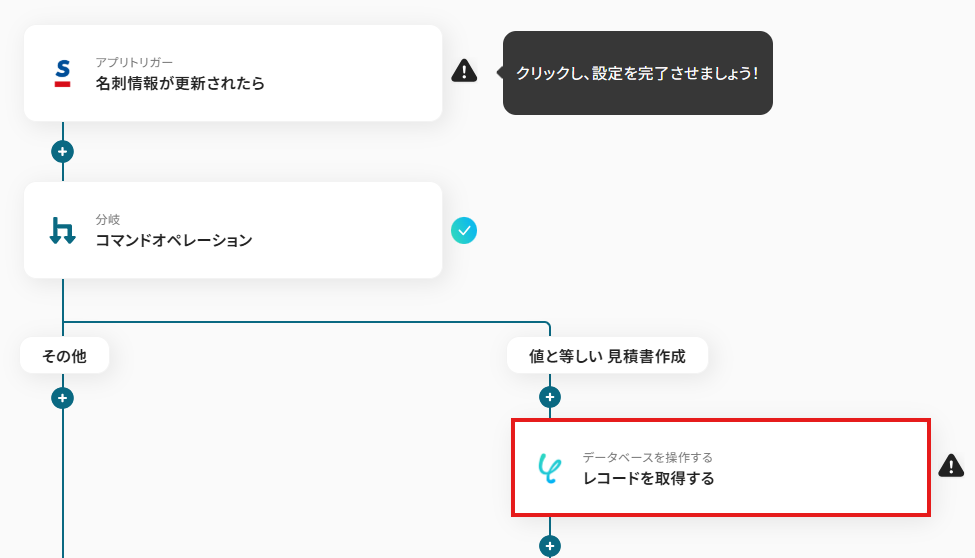 1.データベースを操作する「レコードを取得する」をクリックしましょう。