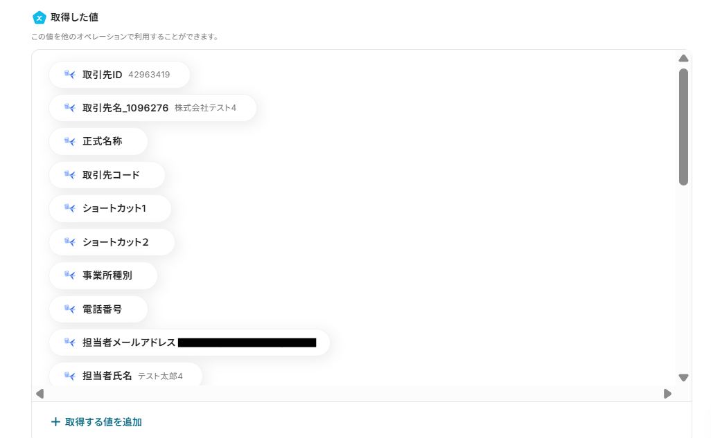 こちらの値は次のフロー設定時に活用するので、取得された内容を確認しましょう。