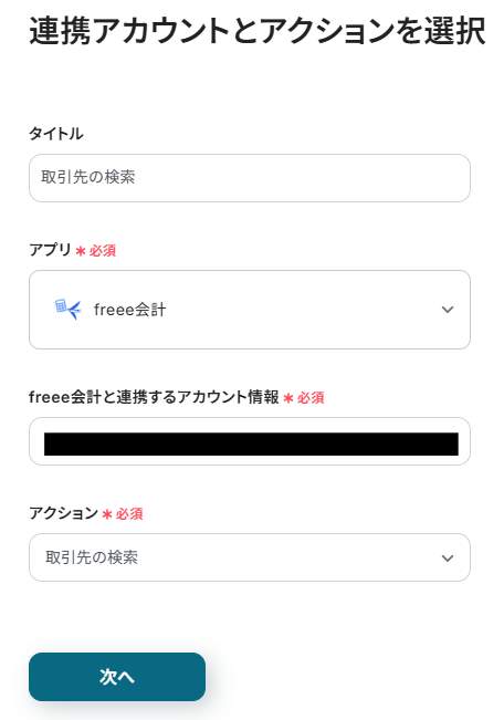 - 「freee会計と連携するアカウント情報」→アカウントに相違がないか確認