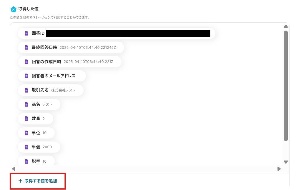・Googleフォームをトリガーとして使用した際の回答内容を取得する方法は下記をご参照ください。