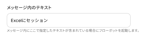 今回は設定したメッセージが投稿されるとフローが起動するため、該当のメッセージ内のテキストを注釈に沿って入力してください。