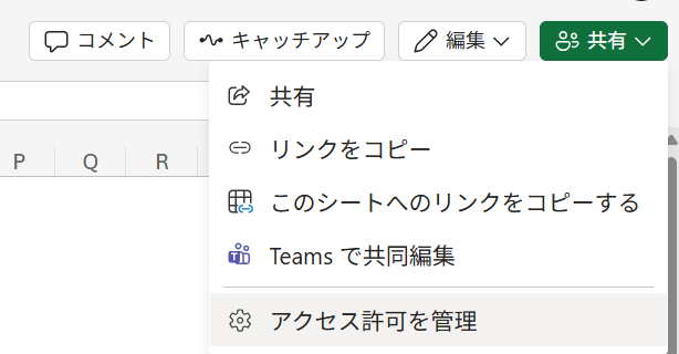 1.該当Bookの左上「共有」>「アクセス許可を管理」を開きます。