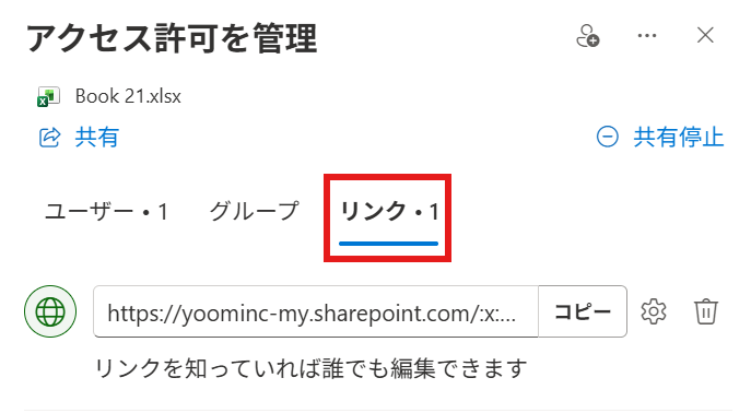 2.「リンク・1」にあるURLをコピーして使用してください。