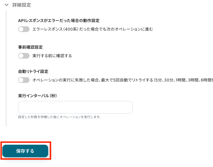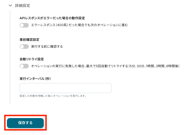 最後に、必要に応じて詳細設定を行い、保存しましょう。