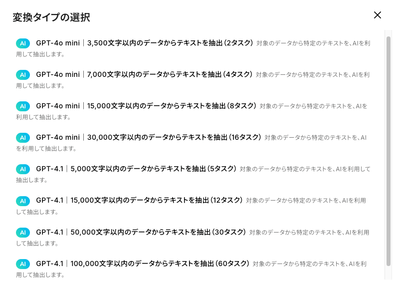 ・OCRまたは音声を文字起こしするAIオペレーションはチームプラン・サクセスプランでのみご利用いただける機能となっております。フリープラン・ミニプランの場合は設定しているフローボットのオペレーションはエラーとなりますので、ご注意ください。