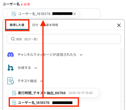 必要に応じて、「+取得する値を追加」ボタンから他のデータを取得することも可能です。
