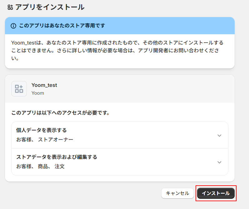 表示内容を確認し、問題なければ「インストール」をクリックしましょう。