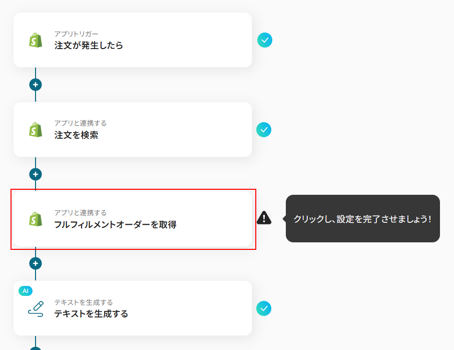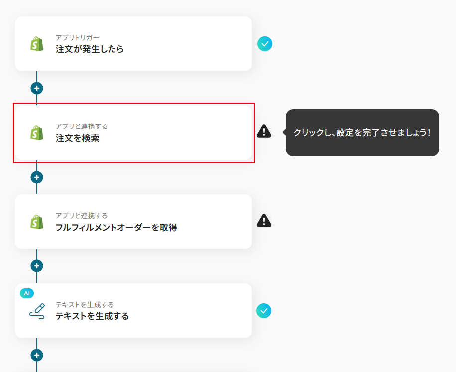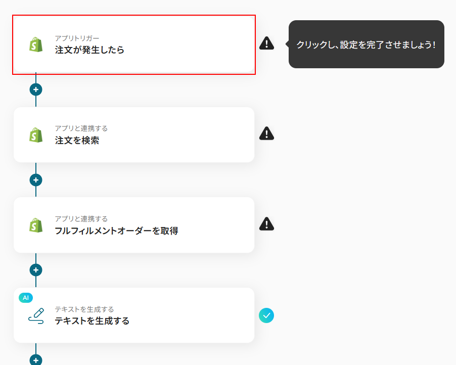 今回ご紹介するテンプレートはShopifyに注文が発生したら起動します。