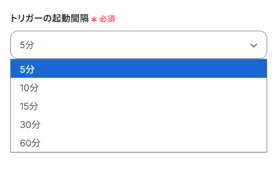 - トリガーの起動タイミングは、5分、10分、15分、30分、60分のいずれかで設定できます。