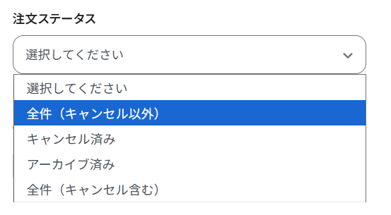 プルダウンメニューからフルフィルメントを行いたい注文のステータスを選んでください。