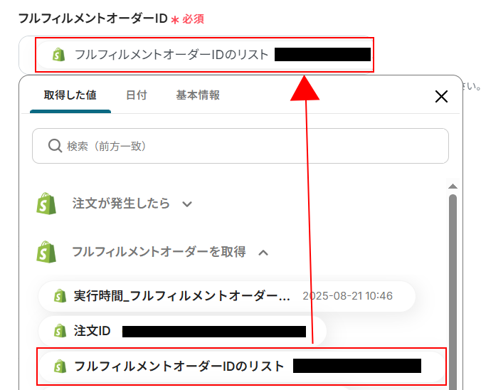 フルフィルメントオーダーIDを設定します。
