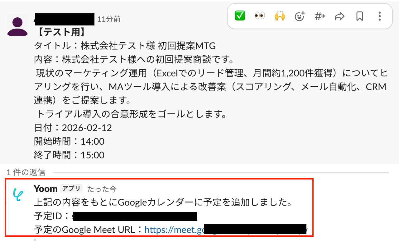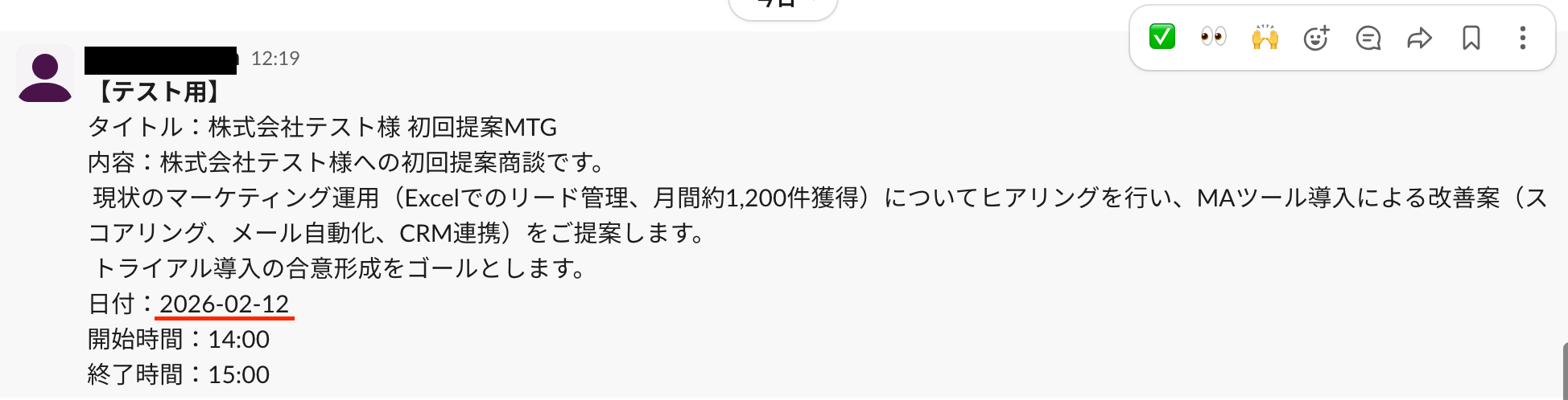- Slackへの投稿だけで自動で予定が登録されるため、カレンダーを開いて手入力していた時間を短縮できます。
