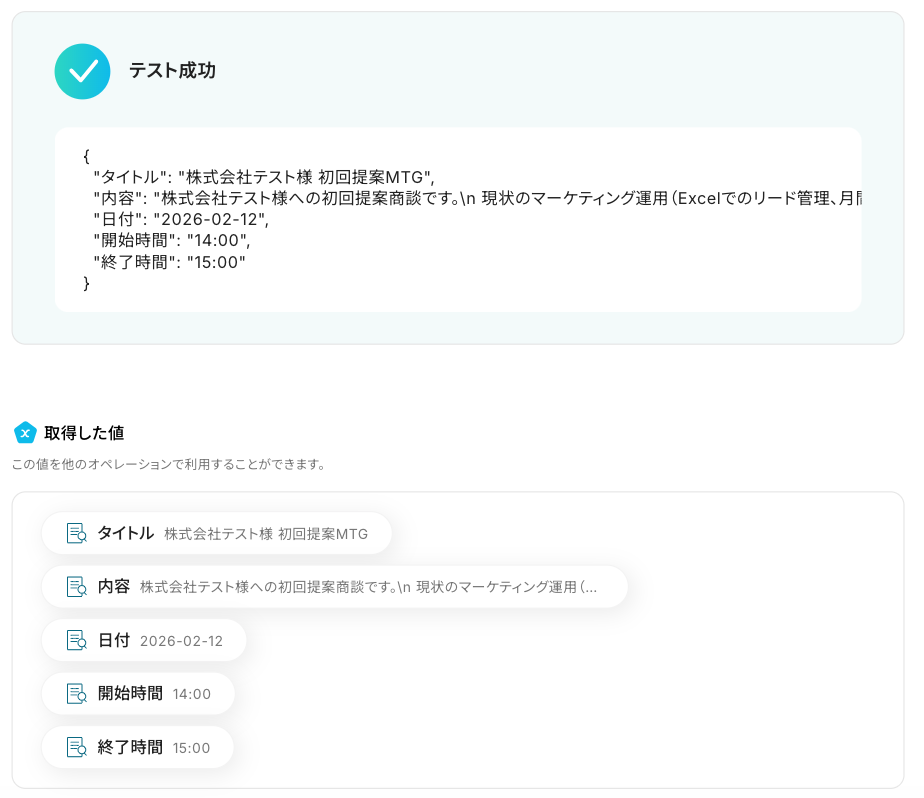 これにより、毎回変動する情報を手動で入力する必要がなくなり、効率的に連携できます!