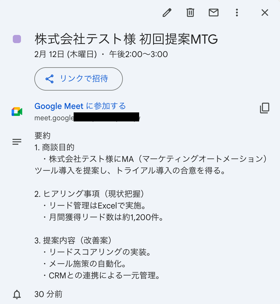 - Salesforceへの商談登録をトリガーに予定が自動作成されるため、Googleカレンダーへの手入力の時間を削減できます。